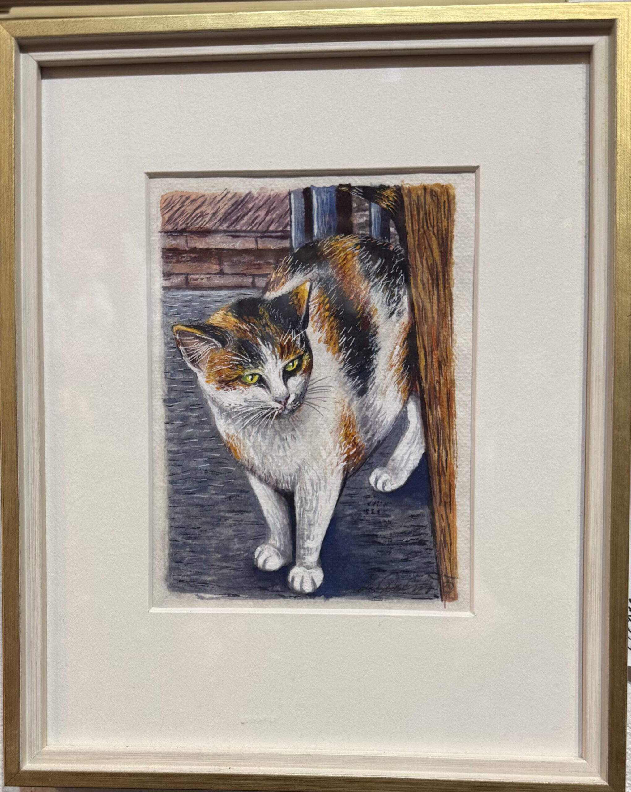 Akvarel, pasparta, rámováno. Malba pod sklem.