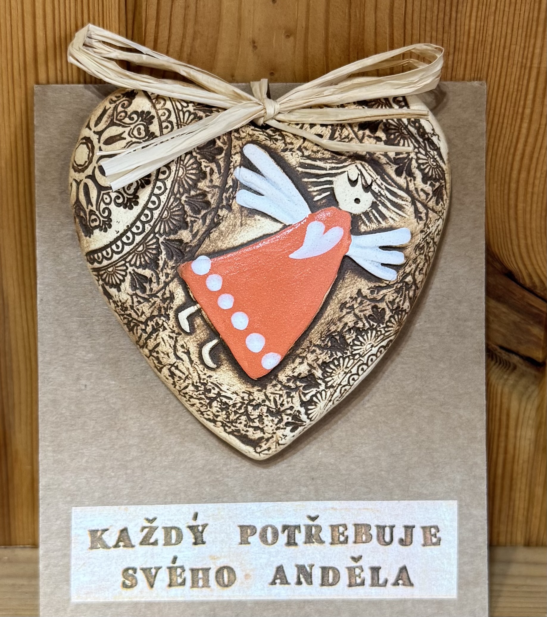 Keramické vypouklé srdce na kartičce, k zavěšení.